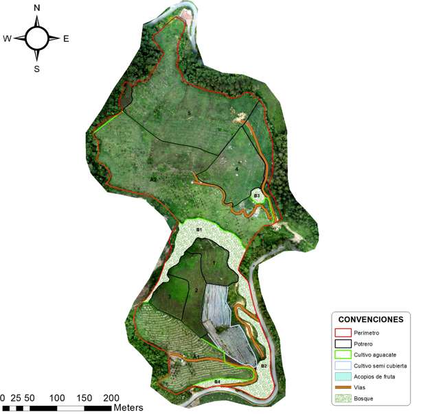 Mapa compuesto de imágenes Geo-Referenciadas de alta resolución que permiten hacer delimitaciones de linderos, areas productivas e identificación de zonas de un predio con una alta precisión de manera económica, rápida y segura.